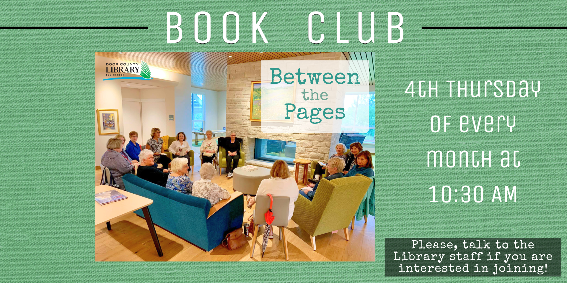 Join Dixie at the Egg Harbor Library in a group book discussion. Download audio book or eBook via Hoopla for free. Participants and listeners are welcome. Join us the 4th Thursday of the Month in the Library Main Space.