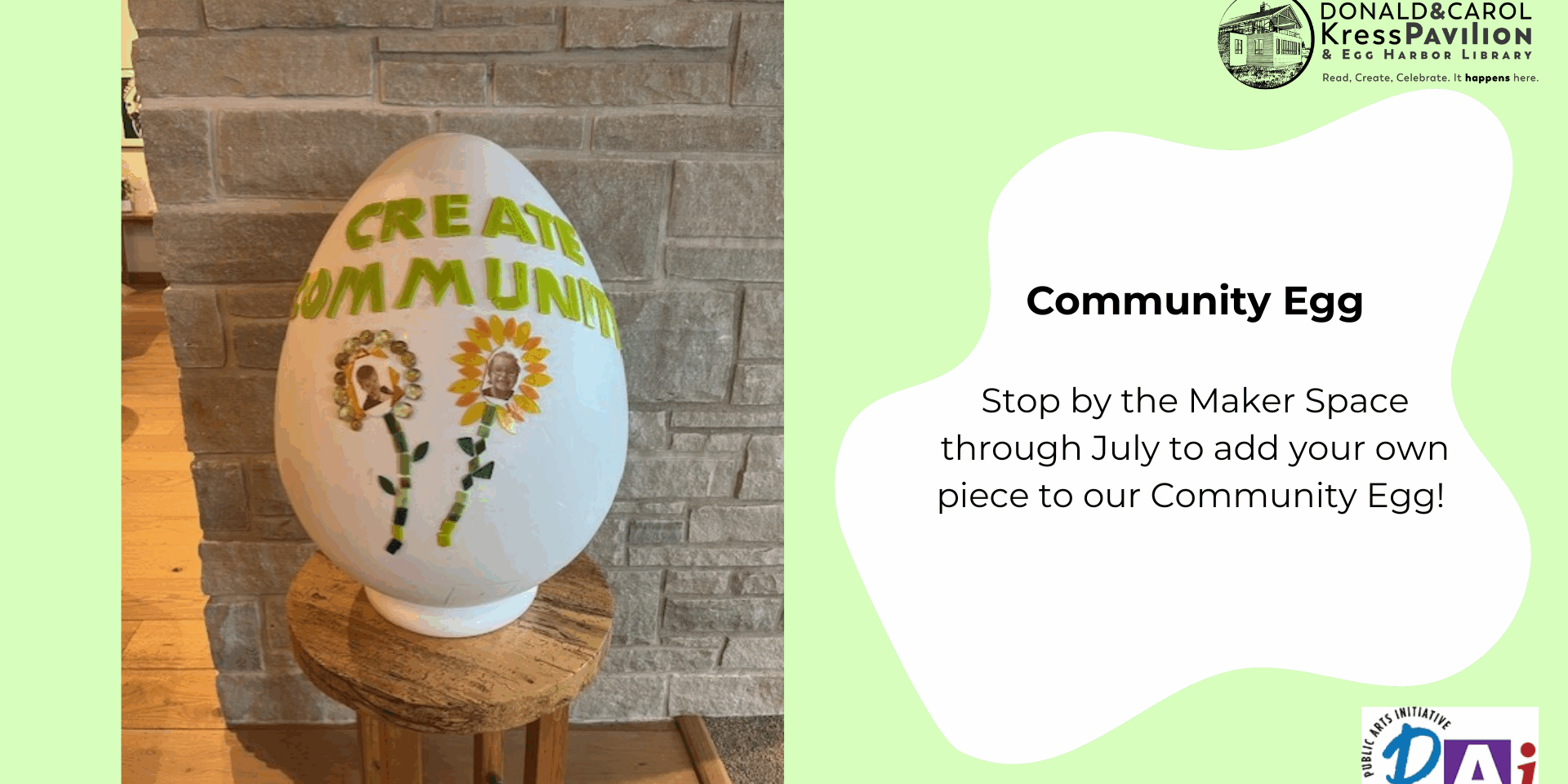 This exciting event invites the community to come together and help design and decorate a giant community egg. The egg will remain in the Maker Space through the end of July, giving everyone a chance to see the collective creativity and add to the Community egg.